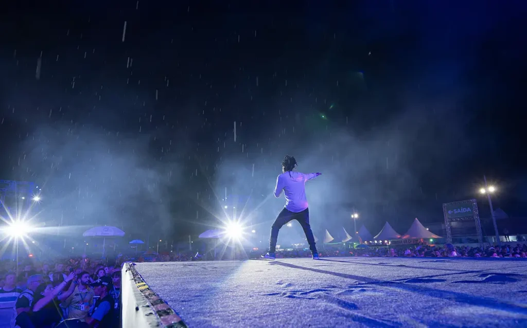 Ele também destacou o aspecto democrático do show, que é gratuito, assim como os outros 32 espetáculos com bandas e cantores nacionais. “O nosso show é uma festa popular, onde famílias e amigos podem curtir. Aqui, temos pessoas de outros municípios e até de outros estados e que podem conferir essa festa linda”, acrescentou o cantor, que dividiu os vocais com Júlio Fejuca e Digão di Souza.