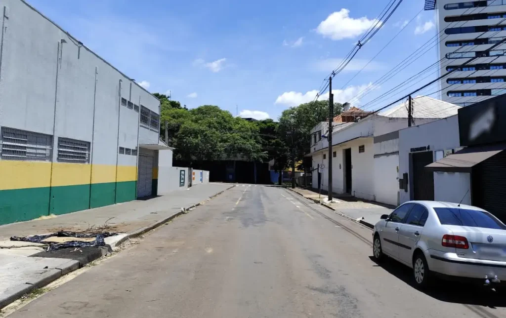Em 2011, quando a esquina era ocupada por uma agência dos Correios, eram três árvores de um lado e nenhuma do outro (abaixo). Em 2023, o número reduziu para duas, e agora um estabelecimento comercial teria concretado o espaço que eram ocupados por elas.