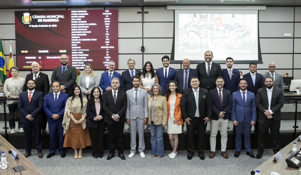 Faltou um Angelo Rigon 1 ano atrás Faltou o vereador Mario Hossokawa (PP) na foto oficial da primeira sessão ordinária do ano. Ele estava em Curitiba, onde participou das posses na Alep e no TJPR, e retornou nesta terça-feira. Foto: Ricardo Lopes/Secom