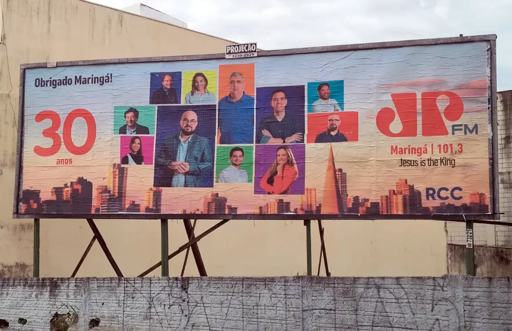 30 anos Angelo Rigon 11 meses atrás Outdoors espalhados pela região comemoram (e agradecem) as três décadas da Jovem Pan FM Maringá (101,3), com direito a fotos de integrantes do RCC News e do Parlatório.