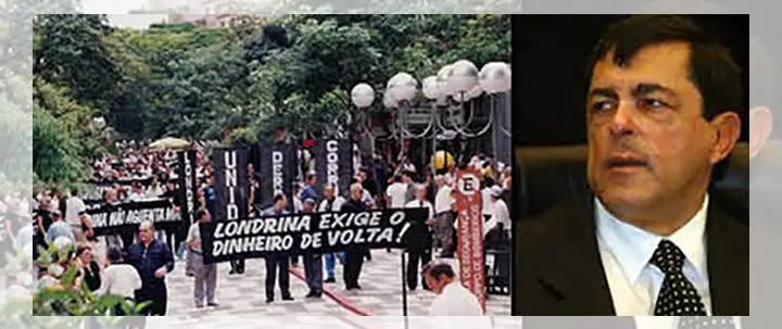 A foto retrata uma das várias manifestações contra a corrupção e a exigência da devolução do dinheiro roubado pela quadrilha instalada na prefeitura de Londrina. José Janene e Antônio Belinati foram os personagens principais do enredo desbaratado pela sociedade que denunciou e fez acelerar o ritmo do trabalho da Justiça em primeiro grau e no Tribunal de Justiça, além do Ministério Público. Lembrança de que sem o povo ir às ruas e mostrar sua indignação, o ‘sistema’ não faz a mínima para colocar os ladrões na cadeia e fazer devolver o dinheiro roubado.