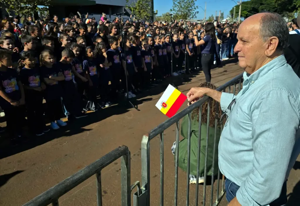 O médico Dr. Batista, chefe regional da Casa Civil (na foto durante o desfile dos 78 anos de Maringá), permanece filiado ao União Brasil mas tem recebido cada vez mais convites para mudar de sigla. Possivelmente vai deixar a decisão para a última hora. Batista fez excelente votação para deputado estadual em 2022, se e se elegeria em qualquer outro partido,