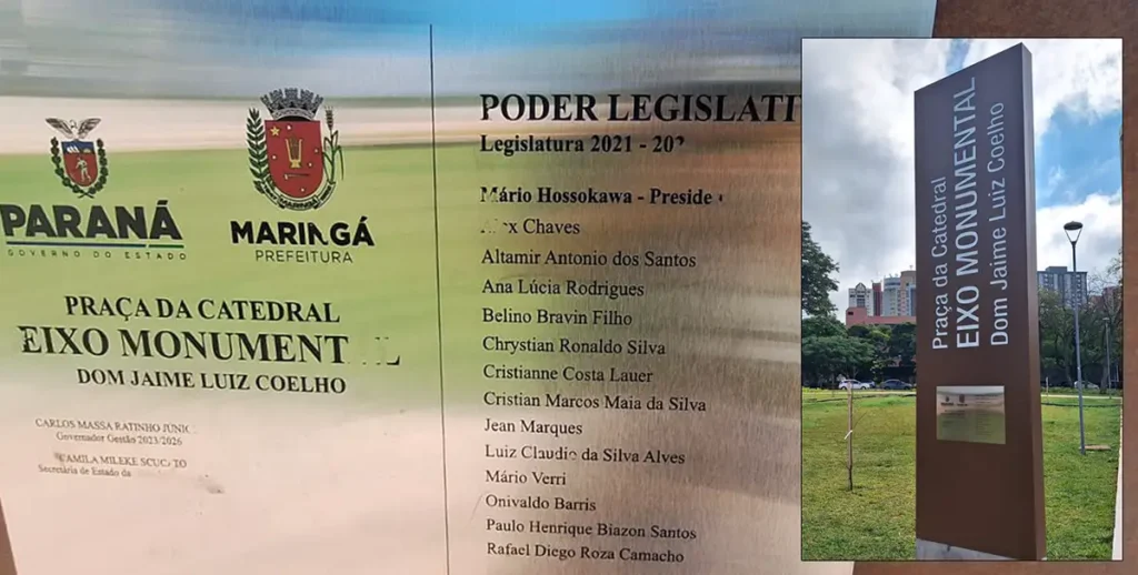 Aproveitando o tema, a administração poderia providenciar placa nova e atualizada com o nome do Eixo Monumental Dom Jaime Luiz Coelho.
