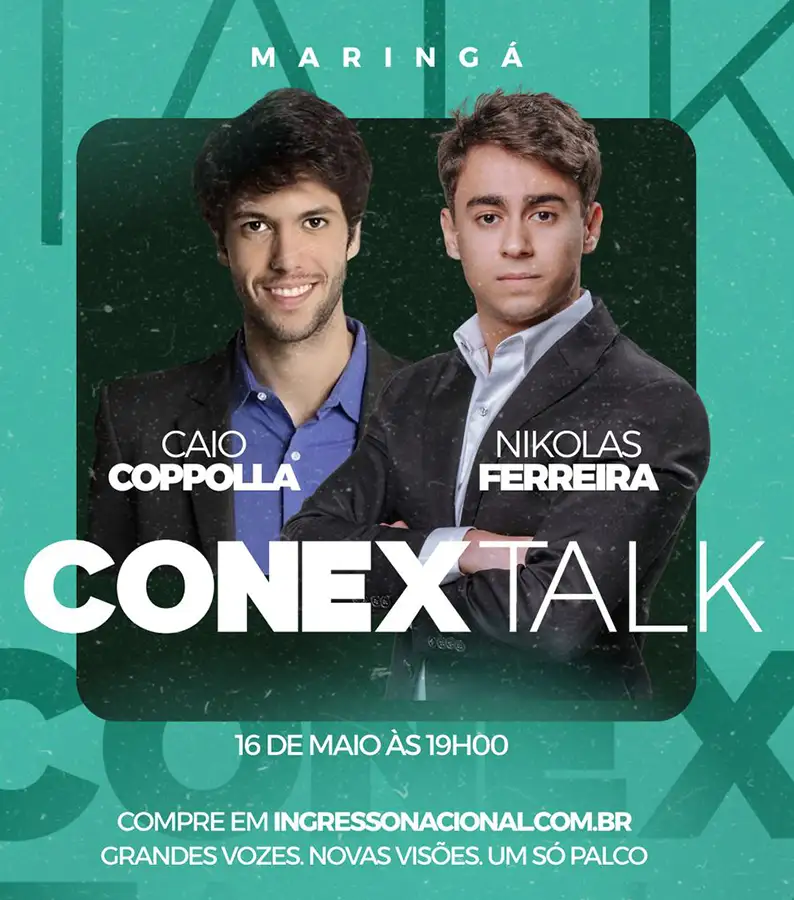 Recentemente condenado por transfobia, o deputado mineiro é conhecido por espalhar desinformações nas redes sociais, casos dos vídeos sobre o Pìx e o INSS. Ele viria para Maringá para participar de um evento chamado Conex Talk, ao lado de Caio Coppola, amanhã à noite num centro de eventos (abaixo). A organização, a cargo de um dirigente de time de futebol profissional da cidade, no entanto, não conseguiu viabilizá-lo; o convite custava R$ 125,00.