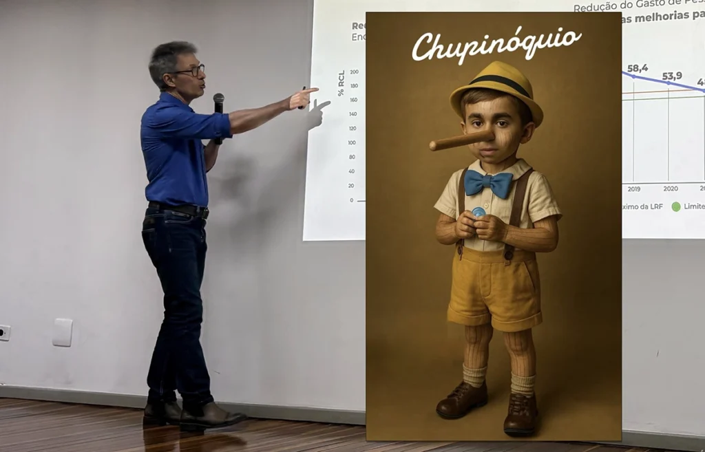 Dois personagens mineiros que passaram na semana passada por Maringá são figuras conhecidas da política nacional, mas pelas polêmicas que suas atitudes e meias-verdades provocam.Em rede social, o perfil Pastor Mala Oficial registrou o Chupinóquio, em “homenagem” ao deputado federal Nikolas Ferreira (PL), trazido a Maringá por um empresário esportivo. O parlamentar, conhecido por espalhar desinformações, teve recente condenação por transfobia, tendo usado na tribuna da Câmara Federal uma peruca loira.