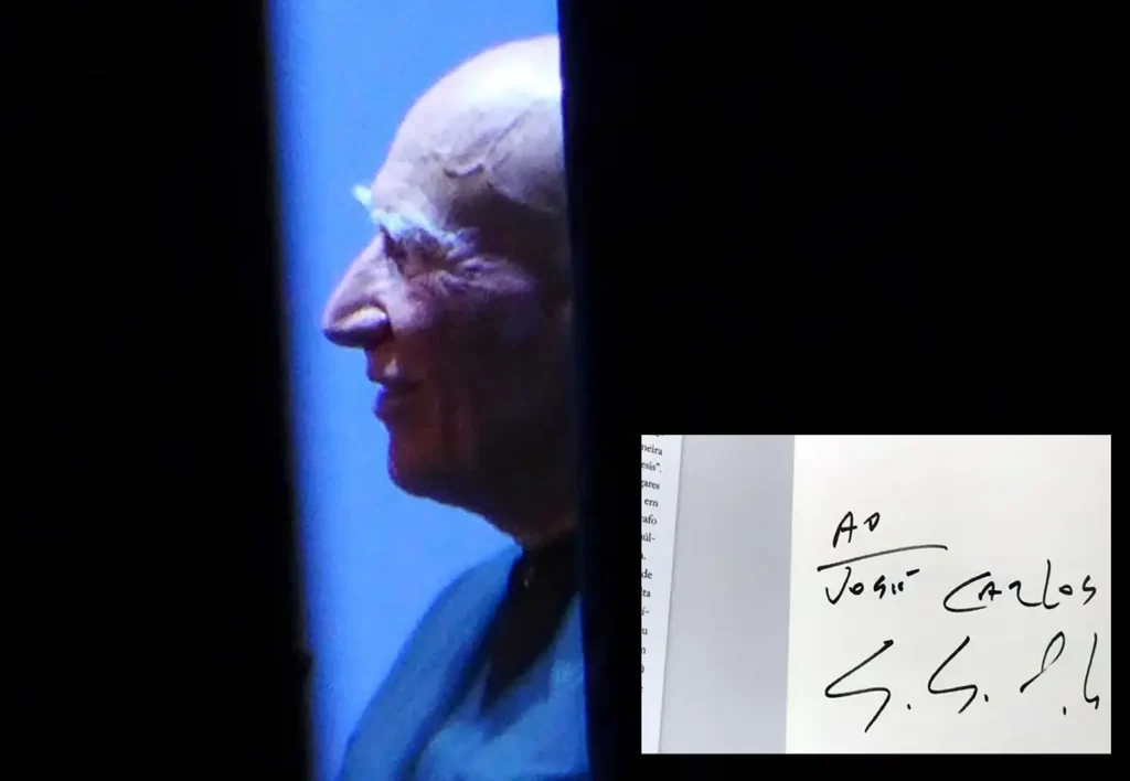 O maringaense JC Cecílio, autor da foto acima, teve o último contato com Salfado no “Paraty em Foco”, no ano passado, em Paraty (RJ). No destaque, o autógrafo no livro “Da minha terra à Terra”.