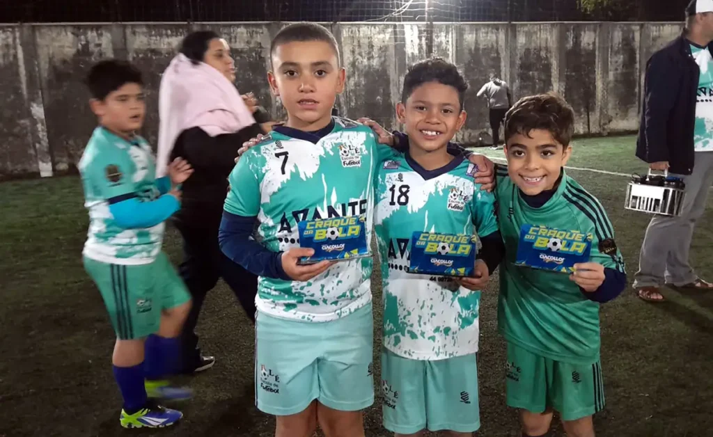 O João (o do meio) tem ganhado prêmio de craque do jogo. É mais um atleta de 8 anos de idade da Escolinha de Futsal João Cica, que vem se destacando nos campeonatos de Maringá.