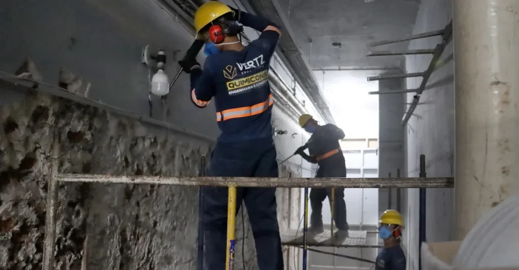“Atualmente, no pavimento intermediário, está sendo realizada a demolição do reboco das paredes de contenção (arrimo), assim como a remoção dos entulhos gerados. Na sequência, será feita a regularização das superfícies e a impermeabilização com argamassa polimérica, seguida pela execução de um novo reboco”, explicou o engenheiro civil e fiscal da SMOP, Alexandre Camilo.
