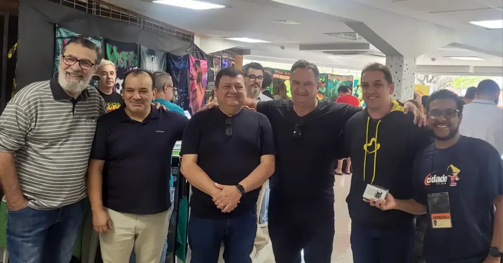 A turma que animava o rádio maringaense nas décadas de 80 e 90 aproveitou o circuito Viniltagem, organizado pelo jornalista e colecionador Andye Iore, uma grande feira de discos de vinil que aconteceu no final de semana, para se reencontrar e relembrar histórias do rádio maringaense.