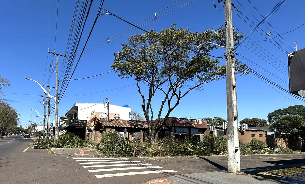 Três árvores foram retiradas na avenida Mandacaru, esquina com a rua Flausina Francisca de Souza, pela Prefeitura de Maringá, e chamaram a atenção das pessoas que se preocupam com o verde da cidade.
