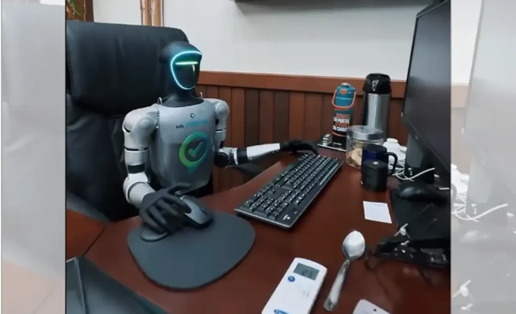 Depois de aparecer no mês passado no Parque do Ingá, o robô Mister Greenn, do empresário Rafael Wisch, nascido em Rondon, visitou o paço municipal e sentou-se na cadeira do prefeito Silvio Barros II (PP). Os piadistas de plantão dizem que foi a primeira vez a cadeira viu alguém com inteligência (artificial) sentar nela.