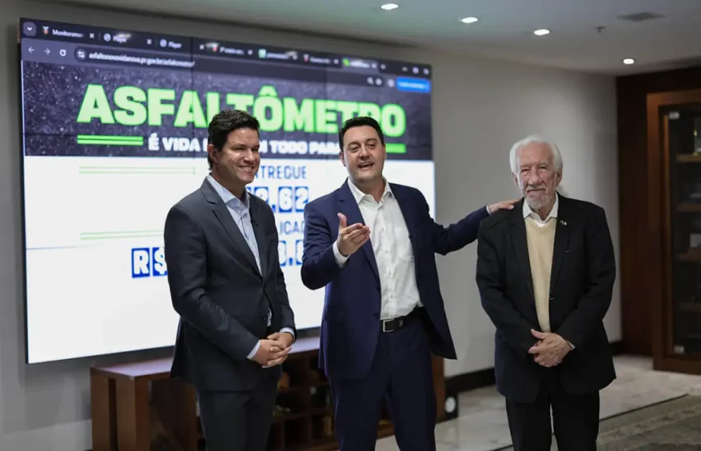 A população vai poder acompanhar em tempo real as obras do Asfalto Novo, Vida Nova. O governador Carlos Massa Ratinho Junior, o vice-governador Darci Piana e o secretário estadual das Cidades, Guto Silva, lançaram nesta terça-feira (2) o Asfaltômetro, ferramenta que permite acessar os dados do maior programa de urbanização da América do Sul, que está levando asfalto, galerias pluviais, calçadas e iluminação de LED aos municípios paranaenses.