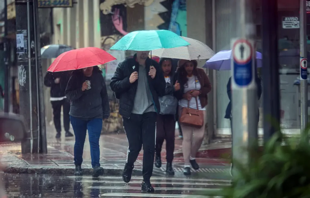 PREVISÃO – Ao longo da manhã, a chuva se deslocou para as regiões Norte, Norte Pioneiro e Campos Gerais, ainda com raios e ventos fortes. Ao longo do dia, a chuva persiste na metade norte e na metade leste paranaense. Já no Oeste, Centro e Sul, o sol volta a aparecer entre muitas nuvens.