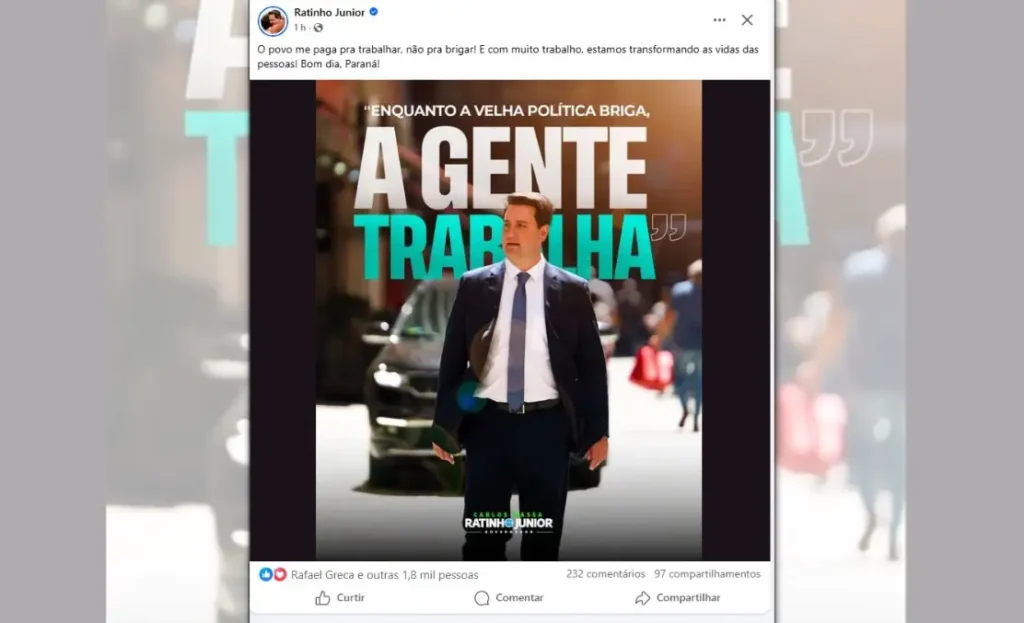 Corrimão Angelo Rigon 5 meses atrás “O secretário Rafael Greca curtindo o patrão das pesquisas”, observa leitor atento às redes sociais.