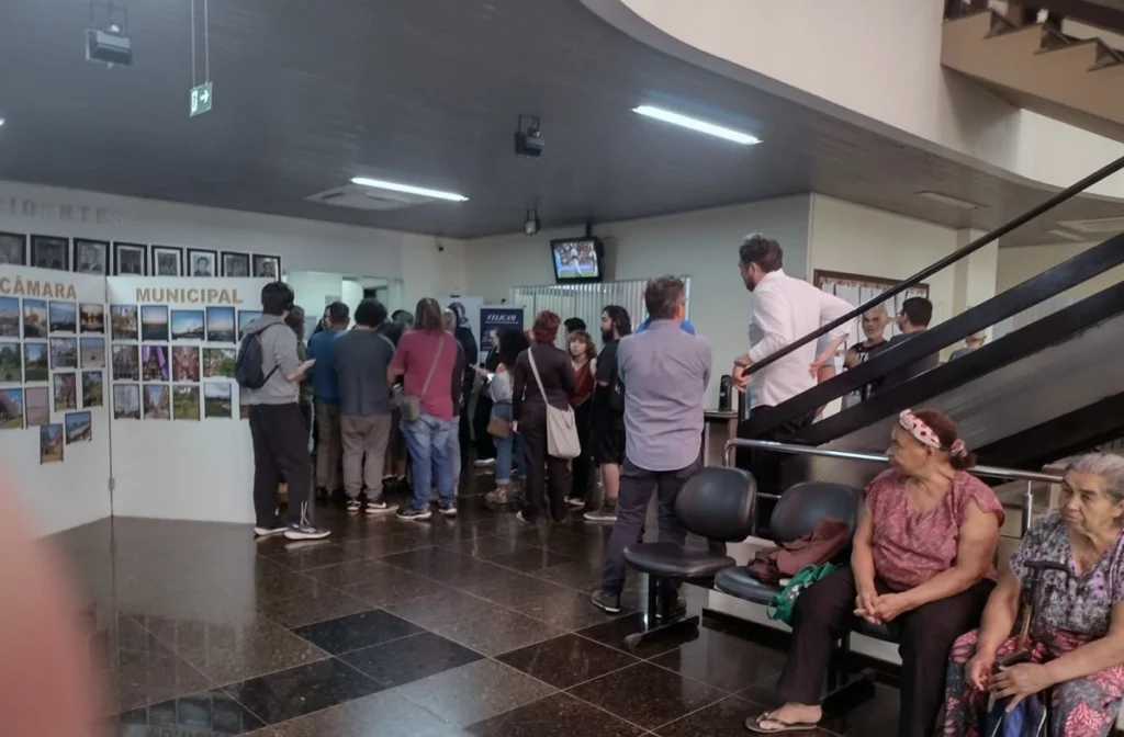 “Eis a casa do povo. Tem seis viaturas, entre as da PM e da guarda do prefeito, algumas estacionadas no parquinho infantil [praça Vereador Malaquias de Abreu] e uma dando voltas. E uns 15 fardados, entre PMs e guardas do prefeito. E os populares, ou vítimas, estão sendo controlados na entrada”, resumiu um jornalista.