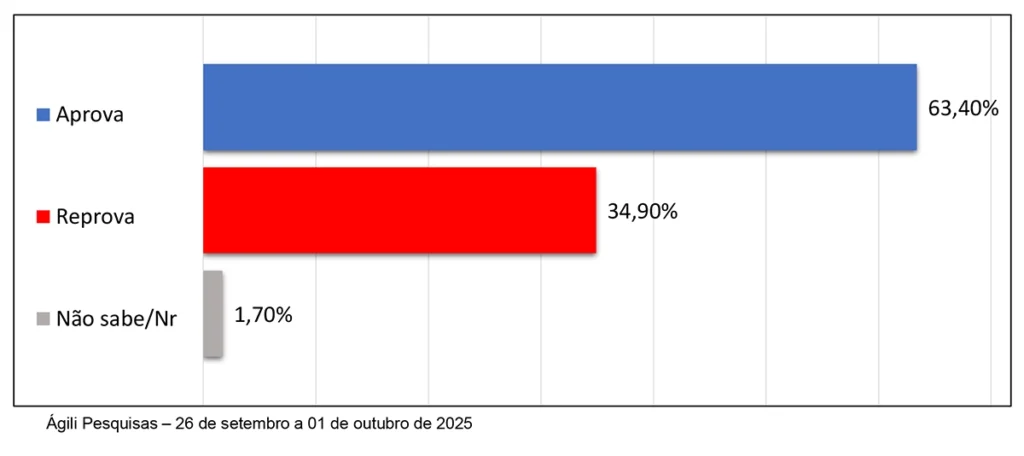 A reprovação, que soma cerca de um terço do total, é mais concentrada entre os homens (44,1%) e na faixa de 45 a 59 anos (40,6%). Confira os dados estratificados no quadro abaixo.