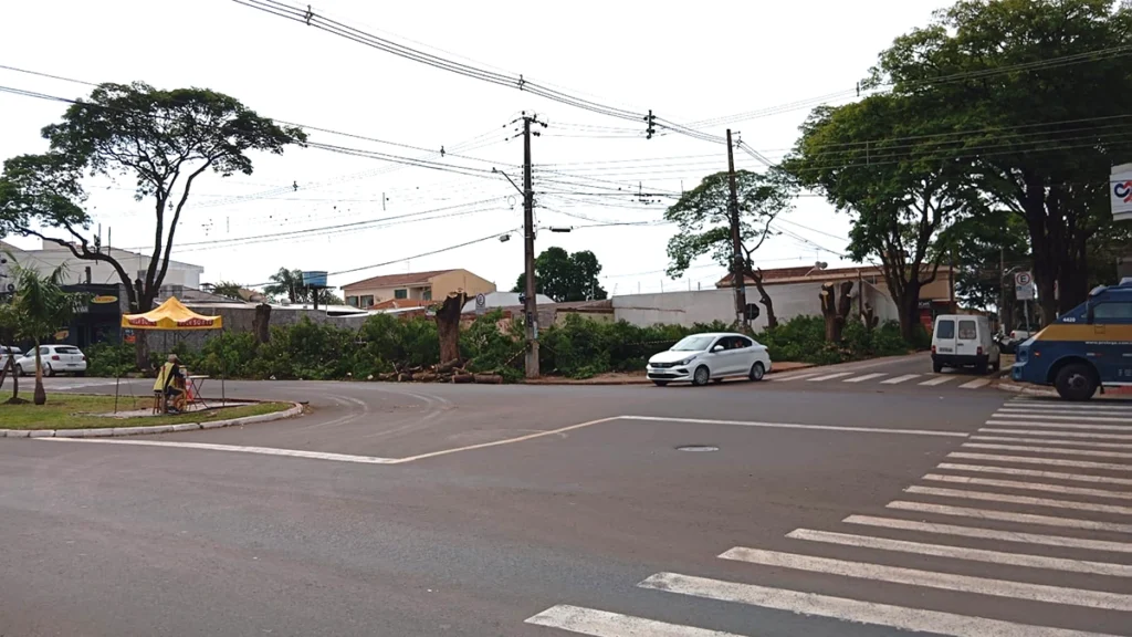 No cruzamento da avenida das Palmeiras esquina com rua Professora Letícia de Paula Molinari, quatro árvores foram cortadas hoje. A programação de serviços divulgada pela prefeitura previa remoções no Jardim Higienópolis, Vila Morangueira e Parque das Grevíleas III.