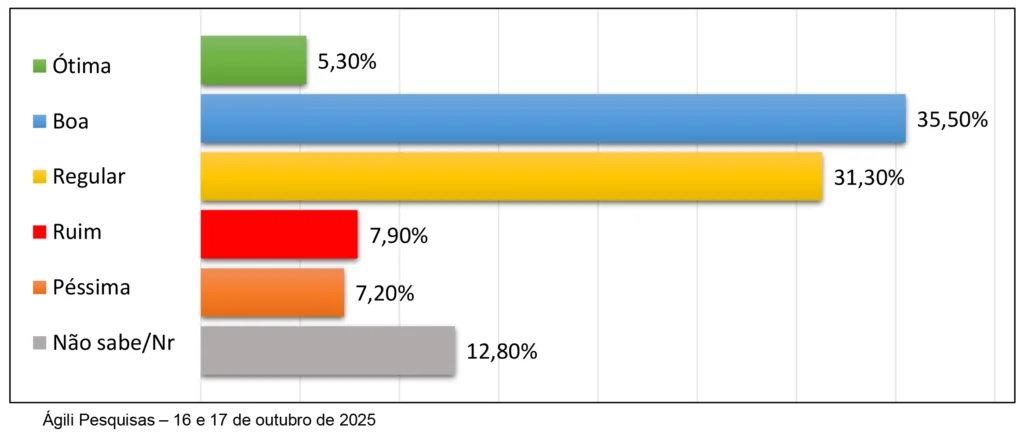 De acordo com o levantamento da Ágili Pesquisas, são os homens que formam a maioria dos que classificação a educação como boa (40,5%), sendo que a39,8% têm o ensino fundamental. Acima, os dados.