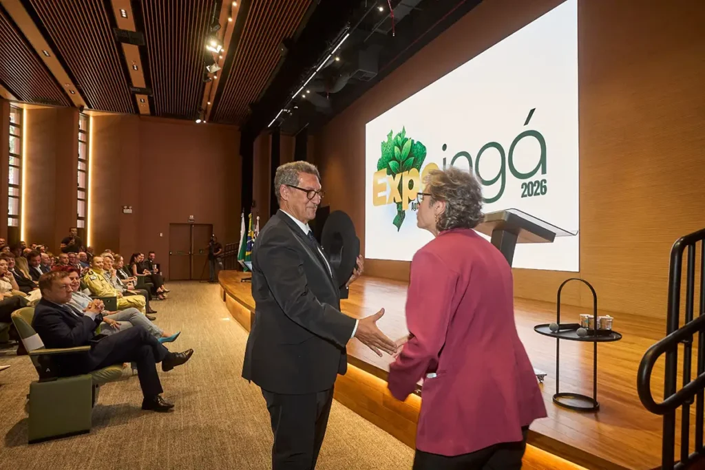 Veja fotos da posse da nova diretoria da Sociedade Rural de Maringá; acima, o presidente eleito fala ao jornalista Paulo Caetano