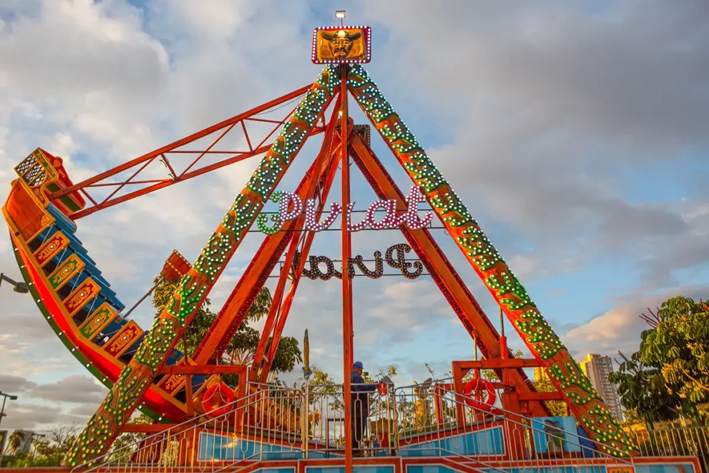 Depois do Oktoberfest em Blumenau (SC), por causa de logística, o Vitinho Park trouxe seus brinquedos para Maringá. Estão alojados temporariamente no parque de exposições e devem começar a ser instalados na segunda quinzena do mês no local da antiga rodoviária municipal, hoje um estacionamento.