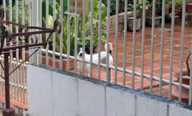 Pipoca observando, com seu único olho, o carro do Street View, em fevereiro do ano passado.