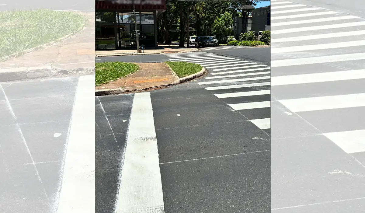 Não está fácil a vida do cadeirante maringaense, constata leitor diante da faixa de tenção na avenida Tiradentes, sobre uma rampa de acessibilidade.