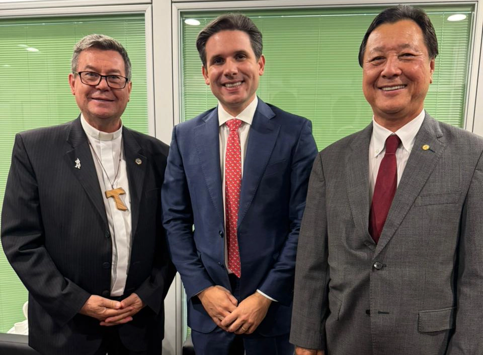 Dom Frei Severino esteve com o presidente da Câmara Federal, Hugo Motta, pedindo pela aprovação de projeto de lei de Luiz Nishimori que permite bazares beneficentes com doações da Receita Federal