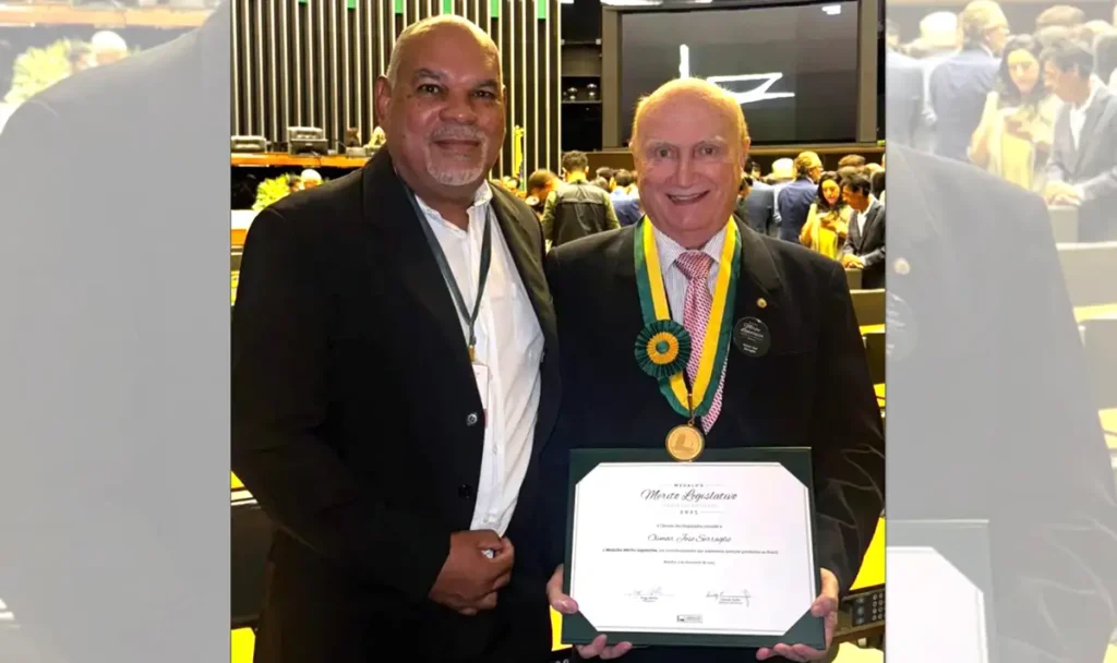 O advogado, ex-deputado federal e ex-ministro da Justiça Osmar Serraglio foi um dos homenageados com a Medalha do Mérito Legislativo na quarta-feira, no plenário da Câmara dos Deputados. O indicante foi o deputado Sergio Souza. Na foto, o umuaramense Serraglio ao lado de seu ex-assessor Carlos Alberto.