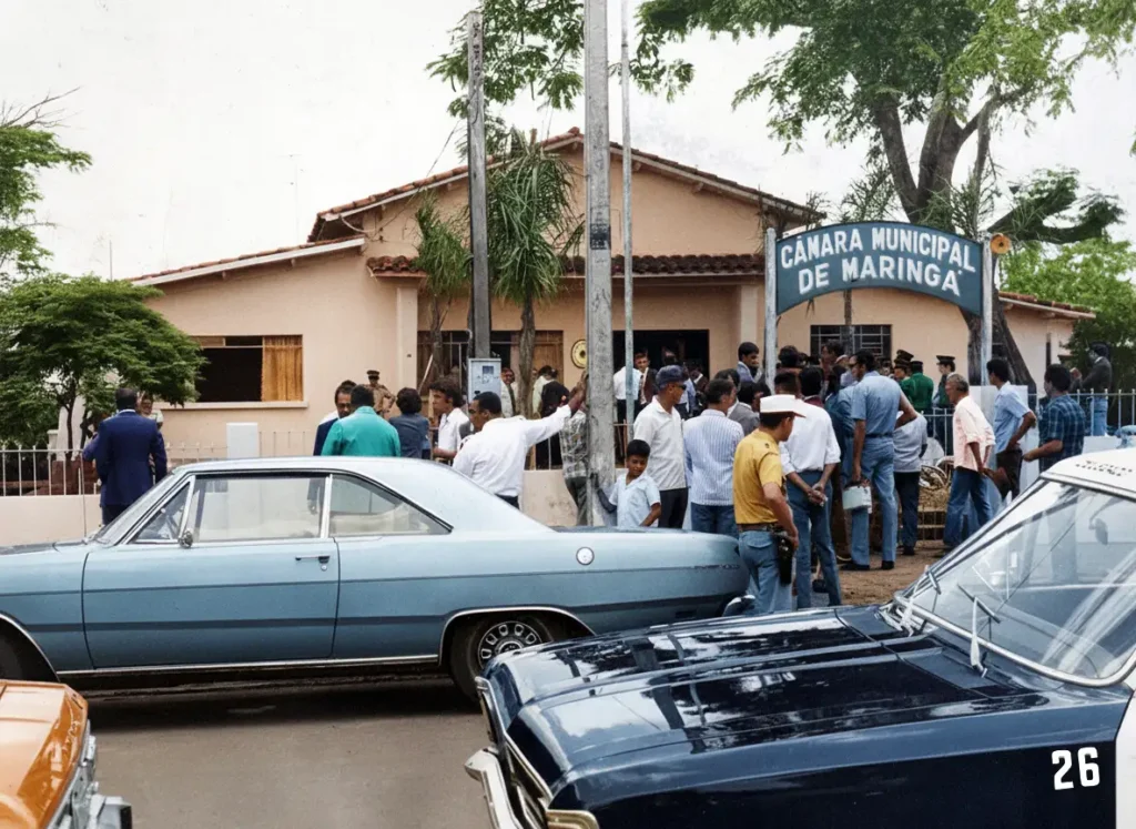 Há 73 anos era empossado o primeiro prefeito de Maringá, Innocente Villanova Junior [isso mesmo, Innocente com dois ‘n’) após a instalação da Câmara. A sessão, presidida por Malachias de Abreu, aconteceu na antiga agência da Chevrolet.