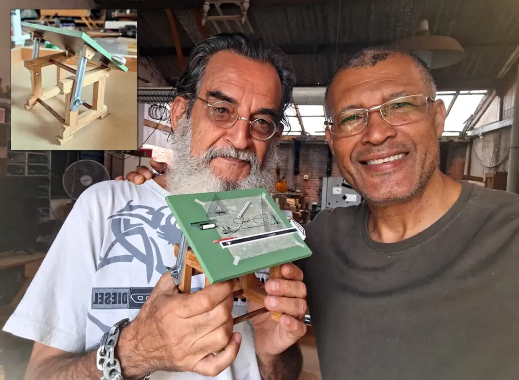 Do grande Dinor Chagas: “Um souvenir do início da caminhada. Uma réplica da prancheta que usei aos 15 anos e anos depois, com a chegada do computador.