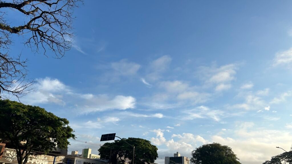 O dia em Maringá Angelo Rigon 2 meses atrás O Simepar prevê dia parcialmente nublado, com pancadas de chuva (95% de probabilidade), temperatura máxima de 26˚C, umidade relativa entre 79% e 89% e pôr do sol às 19h18. Amanhã a previsão é de dia ensolarado.