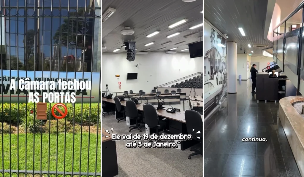 Na tentativa de justificar férias coletivas de 15 dias para todos os servidores, a direção da Câmara de Maringá recorreu a expediente pouco comum – sem ser contestada: publicou em rede social um vídeo informando recesso parlamentar até então desconhecido, inclusive do Regimento Interno da casa.