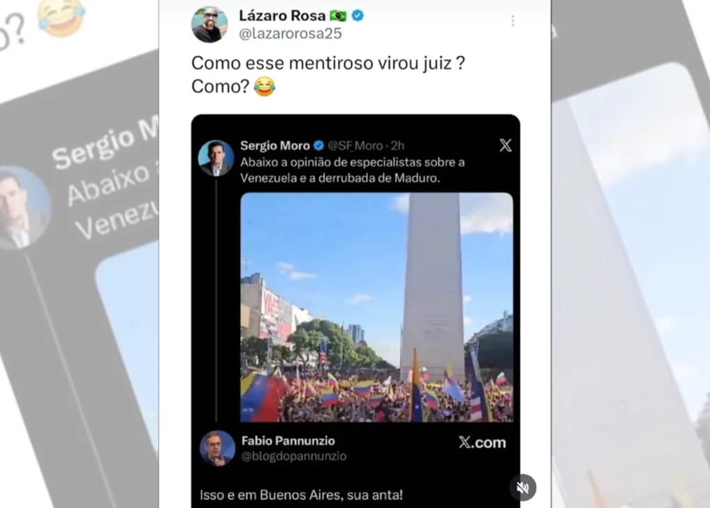 Ele fez uma postagem em rede sobre social sobre a Venezuela – mas colocou uma foto da Argentina. O jornalista Fabio Pannunzio escreveu: “Isso é em Buenos Aires, sua anta!”.