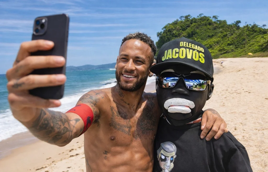 O boneco Benedito retornou do litoral, onde tomou um bronze e encontrou o ex-jogador Neymar. Trata-se, claro, de brincadeira com o gente boa Laudecy Aparecido.