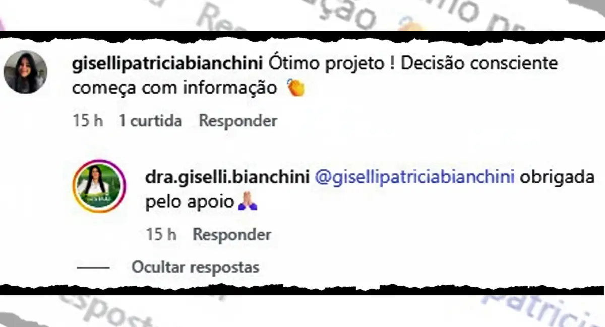Olha que legal! A vereadora maringaense Giselli Bianchini (que assina como “dra”.) agradece em rede social elogio feito por um outro perfil dela. É o conhecido “Parabéns, eu!”.
