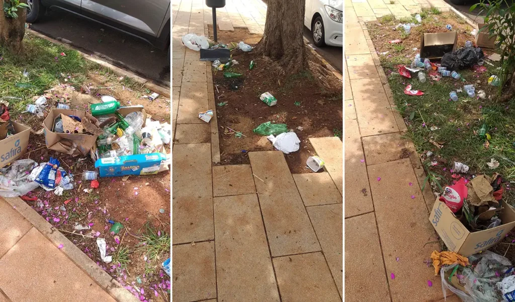 Sete dias após o mais recente jogo no Estádio Regional Willie Davids, a nova calçada no entorno do WD está assim, reclama leitor. O turista que visita aquela região, que tem bares e restaurantes, ou o maringaense que caminha por ali, “sente-se envergonhado” com o lixo espalhado em vários pontos.