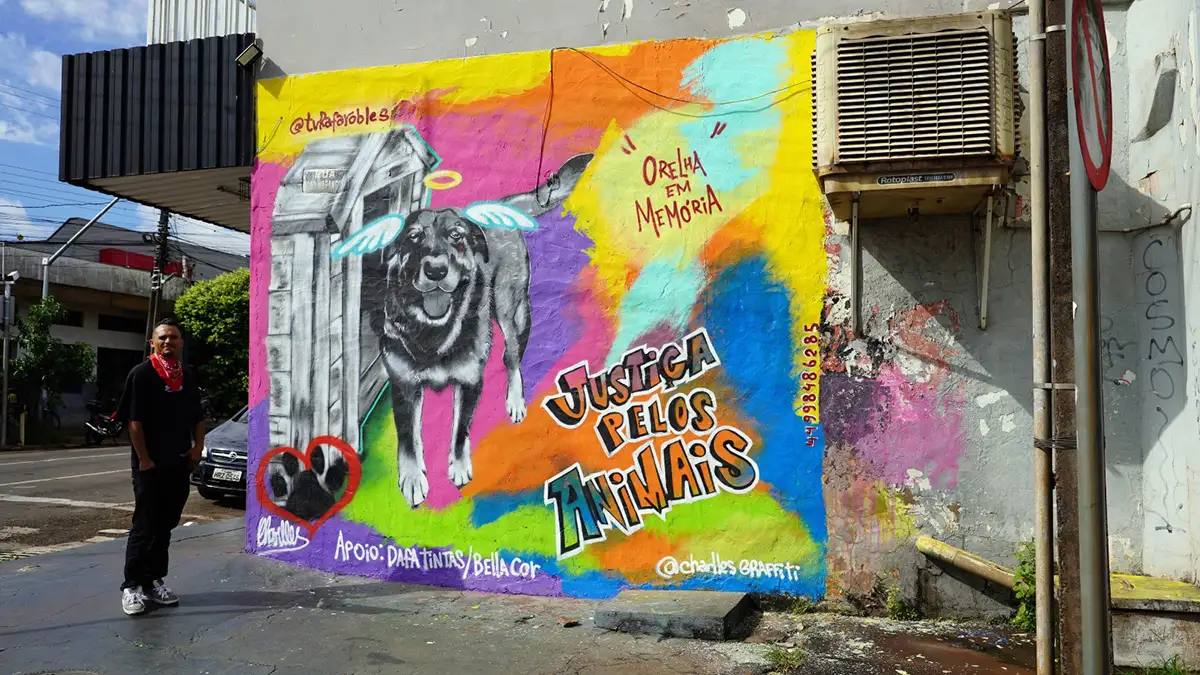 Com duas décadas dedicadas ao grafite, Charlles enxerga a arte como instrumento de comunicação direta com a sociedade. Segundo ele, o grafite nasceu como uma manifestação cultural nas ruas de Nova Iorque, carregando a essência do protesto e da visibilidade para causas importantes. Em Sarandi, essa mesma essência ganha força ao retratar uma pauta que despertou indignação e reforçou debates sobre respeito e proteção animal.