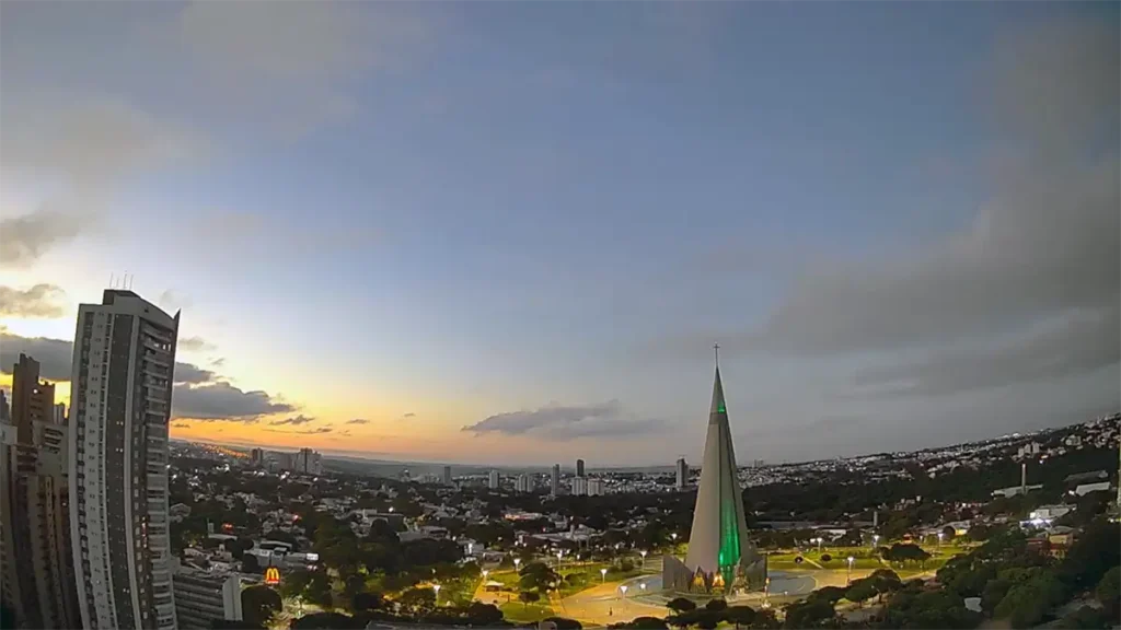 O Simepar prevê dia de céu claro, com temperatura máxima de 33˚C, umidade relativa entre 44% e 94% e pôr do sol às 19h12. Para amanhã a previsão é de tempo parcialmente nublado com pancadas de chuva.