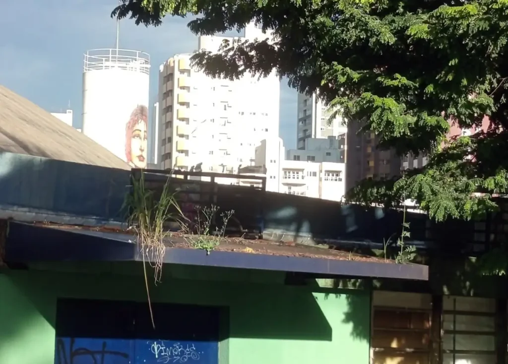 A Secretaria de Esportes e Lazer de Maringá perde tempo em retirar arte urbana da Vila Olímpica, algumas feitas por artistas nacionais, mas não se preocupa em tirar o mato que começa a ganhar corpo na cobertura da pasta, no Ginásio de Esportes Chico Neto.