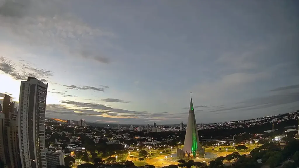 Sexta-feira de tempo parcialmente nublado, com pancadas de chuva, com temperatura máxima de 30˚C, umidade relativa entre 56% e 97% e pôr do sol às 19h11.