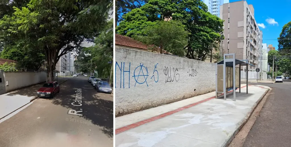 Na rua Campos Sales esquina rua Marques de Abrantes, na Zona 7, foram retiradas árvores, os buracos foram fechados e não houve replantio. Só cimento. “Clara violação à lei municipal 10.510/2017, artigo 8″, lembra leitor.