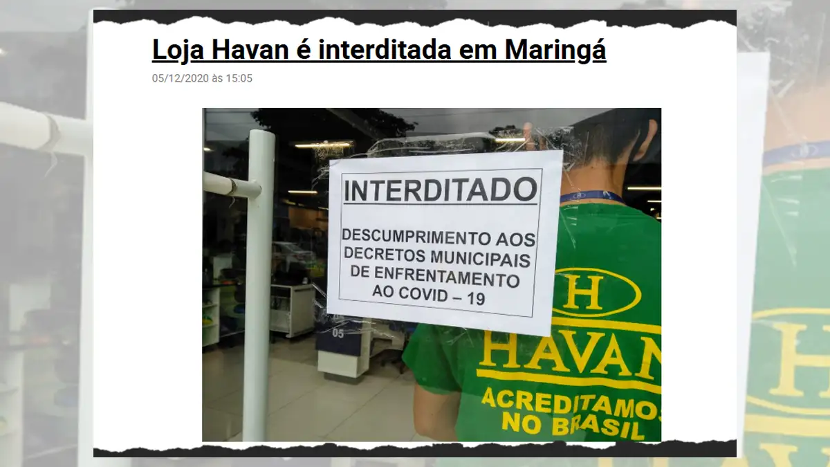 Depois de ver Luciano Hang em rede socialn preocupado com limpeza, leitor lembrou dos tempos de covid-19, quando a Havan foi interditada e multada em Maringá.