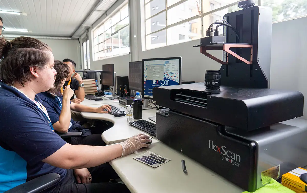 Gerente de projetos da empresa, Fernando Henrique Andrade explica que o trabalho envolve equipamentos especializados para diferentes tipos de documentos históricos. “Acho que a gente tem equipamentos que são os padrões, que são scanners, padrões de alta velocidade, mas a gente pode focar também nos scanners que a gente chama planetário, que é o scanner que a gente utiliza para digitalização de livro, onde a gente não precisa descaracterizar o livro para poder gerar imagem. Nós temos os equipamentos que vão fazer a captura do microfilme e também das jaquetas, que são documentos mais antigos. Temos equipamentos específicos para atender essa demanda”, disse.