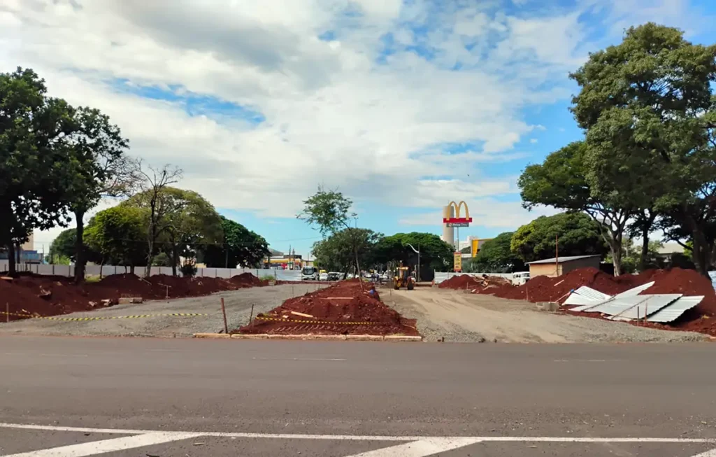 A praça Senador Abilon de Souza Naves, no bairro Aeroporto, está sendo cortada no sentido avenida Laguna/JK-avenida Tuiuti, sem ciclovia. Inicialmente, a Brasil cruzaria a praça, mas o projeto foi alterado.
