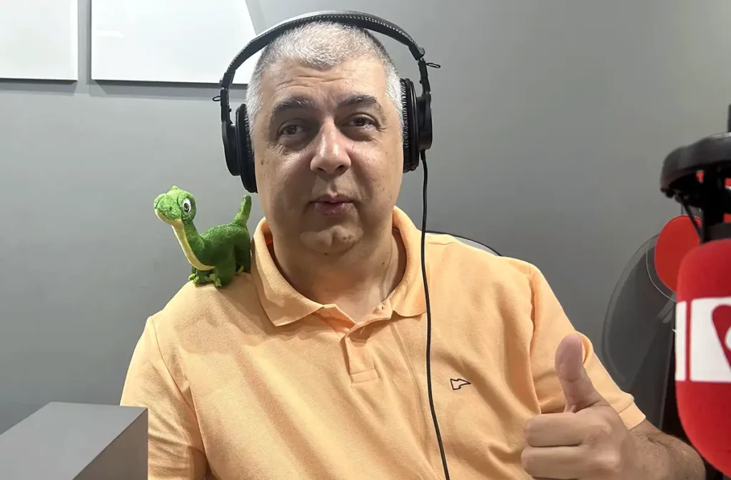 Mascote Angelo Rigon 3 horas atrás O dinossauro Dino ganhou mais um mascote: o apresentador do Jurassic Pan, Alexandre Mota, o Carioca.