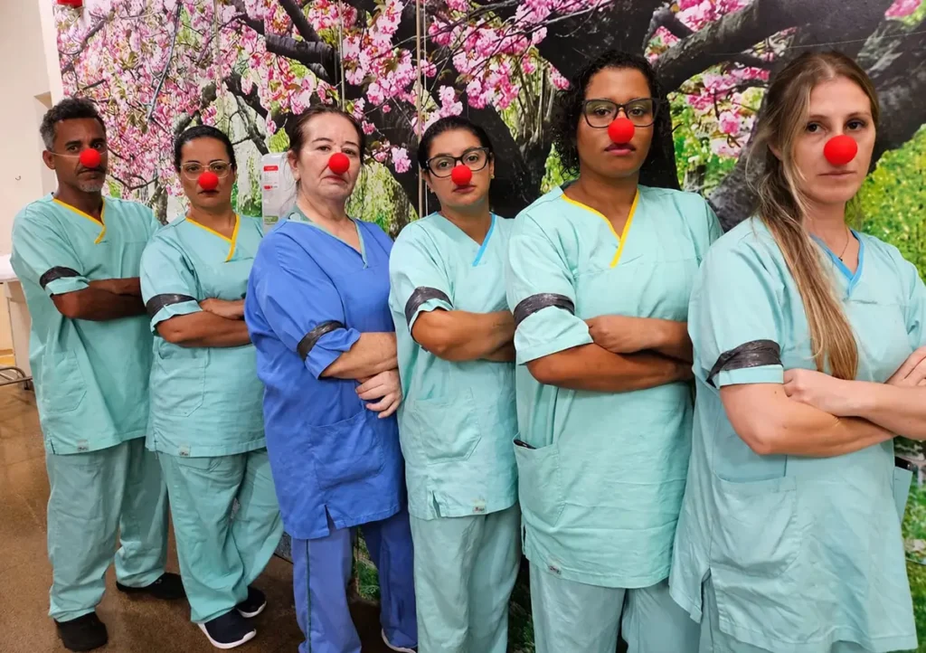 Município explica que volume de horas na saúde tem sido questionada por órgãos de controle e não há alteração na jornada de trabalho; servidores protestam contra o fim da escala usando fitas pretas e nariz de palhaço