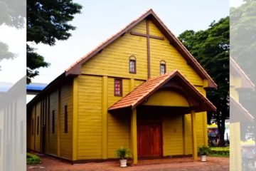 A propósito da tentativa de mudança de cor da Capela Santa Cruz, eis a versão colorizada de foto de 1950 no então Ginásio Santa Cruz, das irmãs Carmelitas. A capela tinha sido entregue havia pouco tempo, construída que foi com a doação feitas pelas várias madeiras da cidade.