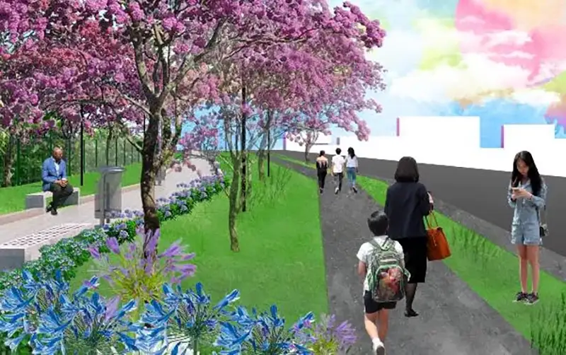 Em junho de 2022 o parque foi inaugurado com praça de convivência com quadra de vôlei de areia, ATI e playground, na esquina da avenida Tuiuti com rua Rio São Francisco. “Além das atrações recreativas, o Parque Rio Samambaia também terá um corredor de ipês em homenagem aos maringaenses vítimas da covid-19”, informou a prefeitura à época, divulgando uma prévia do que seria o corredor (acima).