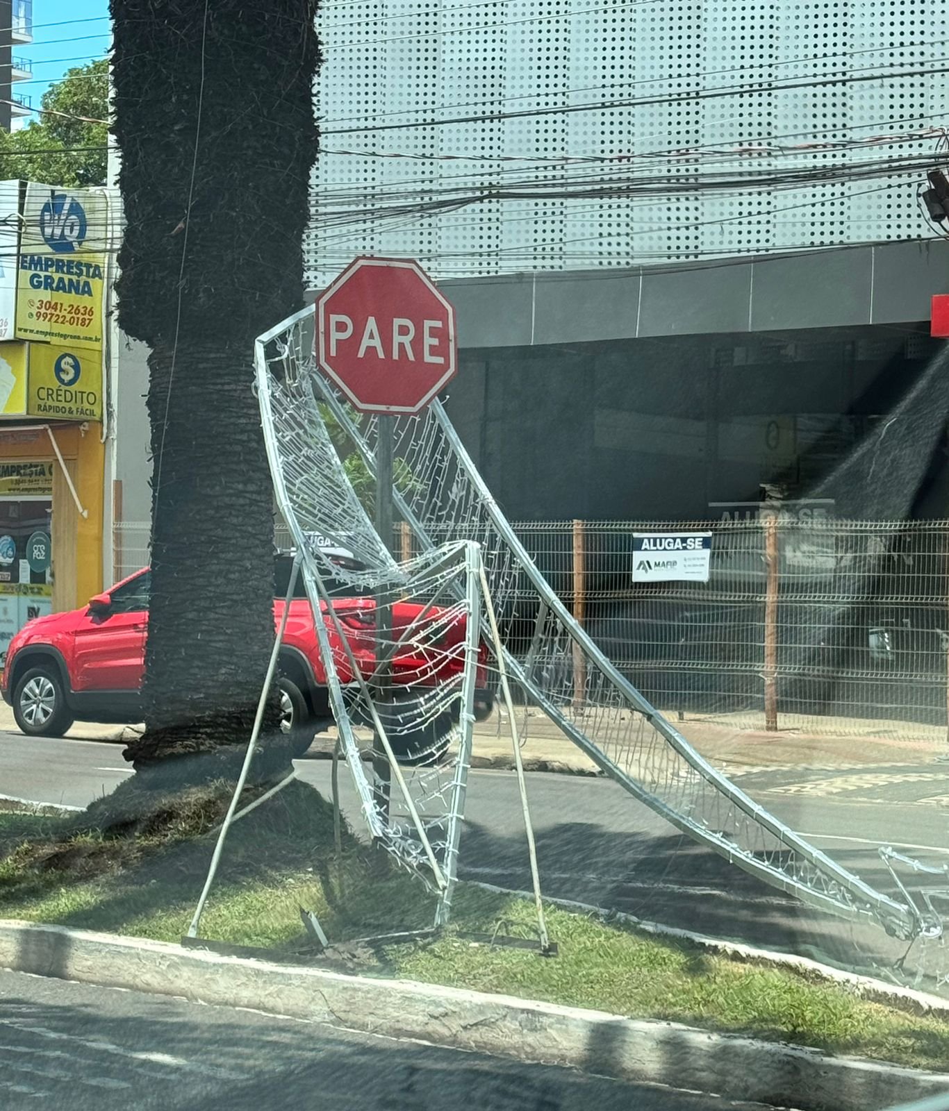 Estrutura de decoração natalina, no canteiro central da avenida Duque de Caxias, próximo ao paço municipal.