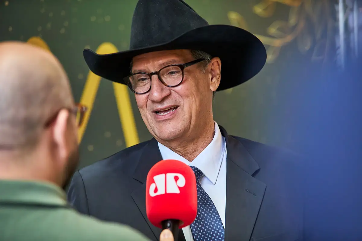 Veja fotos da posse da nova diretoria da Sociedade Rural de Maringá; acima, o presidente eleito fala ao jornalista Paulo Caetano